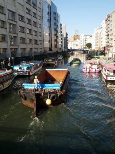 今朝、浅草橋で見かけた風景です。この狭い川をどこまで上流に行くのでしょうね。このまま秋葉原の真ん中を突き進み、丸の内線にぶつかったりはしないのでしょうか。。^^;