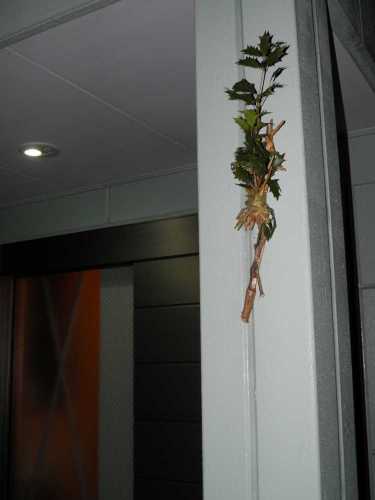玄関先にひいらぎといわしの頭を飾りましたよ。^^節分が過ぎたら取るのだそうです。