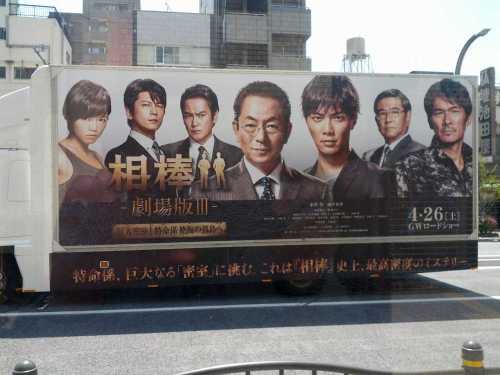 今日は上野の方に用事に行ってきました。携帯電話(といってもPHSですが)を忘れたので、公衆電話でしゃべっていると、なにやら騒がしい…。映画「相棒」の宣伝カーでした。静かなところで話しているつもりが、いつの間にやら騒がしくなってくると、ちょっとドキッとしますね。^^;
