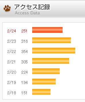 2月19日からアクセス記録がちょっと異常です。今までの記録は276アクセスなので、354アクセスというのは、ウチのブログ史上最多アクセスだと思われます。19日といえば東京マラソンの話題を書く前だし、まさか船の本が受けたのかなぁ。^^;