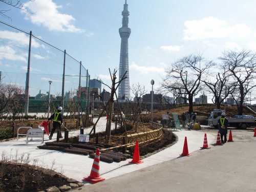 長らく続いていた隅田公園の工事が終わるようです。公園事務所が少年野球場脇から言問橋の横に移転したことで、公園部分の拡張工事が行われていたのです。下に示す地図に工事の範囲が書いてあります。梅も綺麗に咲いていたので撮ってきました。^^