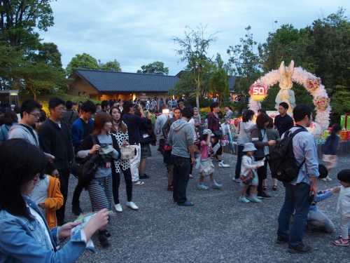 5月3日に帰省した時に、妹がなばなの里に行きたいというので行ってきました。3月末で呼び物のイルミネーションが終わる時には大渋滞だった道路も、5月10日まで延長になったため、この日は渋滞もほとんどなくてすぐに着きました。園内は午後7時前のイルミネーション開始を待つ人でごった返していました。^^;こちらは園内の長島ビール園。ずいぶんたくさんの家族連れが並んでましたよ。午後6時55分になってイルミネーションが点灯しました。ここは「光の雲海・光のアーチ」です。青い光に目が少しチカチカして平衡感覚が少しヘンな感じで、浮いているような感覚でした。地面は青い光のまま変化しませんが、中に立っている三角錐は色んな色に変化してました。ここは園内のチャペルです。ハート型のイルミネーションの前でたくさんの人が記念写真を撮ってました。チャペルの中です。