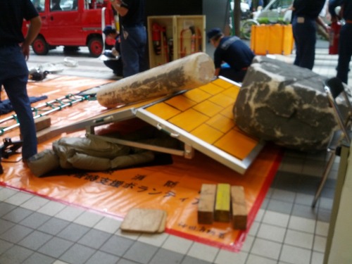 日曜日に秋葉原に行く用事があって、たまたまベルサール秋葉原の前を通りがかったら、「防災の日 缶詰・びん詰・レトルト食品フェスティバル」というのをやってました。この場所では、前日にブログ友のライヲンさんが楽しい体験をしてきたようですが、自分も起震車など楽しんできましたよ。^^これは建物の下敷きになっている人形を助け出すデモです。自動車のジャッキを使って持ち上げてました。こちらはレトルト食品などの無料配布。レシピを披露するコーナーなどもあって、会場の半分は防災で、もう半分は食品のコーナーでした。起震車は、以前体験したモノと違って、東日本大震災や関東大震災を再現できるタイプではなくて、単純に揺れるだけでした。震度7を体験してきましたが、以前体験した関東大震災の方が怖かったですね。