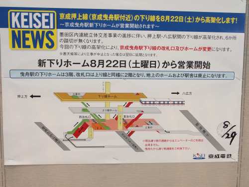 ずいぶん長く続いてきた京成曳舟駅の高架化工事が終わるようです。今週土曜日22日に残っていた下り線も高架に移動になります。こちらは現在の下りホーム。狭くて通過列車が来ると危ないですね。線路の向こう側が土曜日から使用される下りホーム。綺麗ですね。さて今週末、鉄ちゃんの(?)MoMo太郎さんは初乗りしに来るのでしょうか。^^【楽天ブックスならいつでも送料無料】京成線さんぽ価格:960円(税込、送料込)