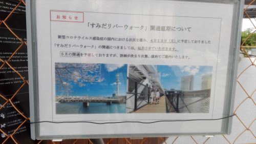 3月4日の日記で紹介したすみだリバーウォークですが、開通が延期になってました。今月中に開通予定らしいです。施設はすでに完成しているのに開通しないのは、やっぱり開通式をしたいからですかね。(^-^;)