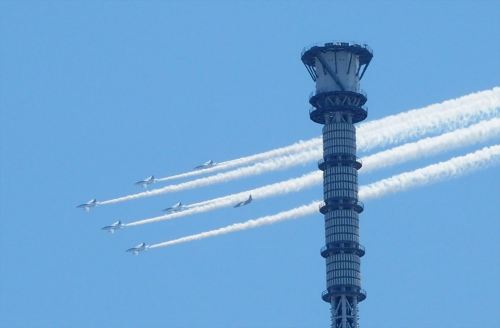 今日のお昼に、東京の空で航空自衛隊のブルーインパルスの演技がありました。 目的は、新型コロナウイルスへの対応を続ける医師や看護師に敬意を示すためとのことです。 午後0時42分頃、西の空から6機編隊のブルーインパルスが飛んできました。 ウチは3階のルーフバルコニーから見ていたのですが、ご近所もベランダや屋上に出て見ている方がたくさんいました。 同じルートで2回飛んでくれたのでとても見応えがありました。 もっと大きな音がするかと思ったのですが、それほど気になりませんでした。 ブルーインパルスが飛んでくるまではそれほど興味が無いように見えた奥さんですが、最後にはボクよりも喜んでいたみたいです。 一糸乱れぬ演技にとても元気をもらいました。^^ 下の写真は偶然撮れていた取材中と思われるヘリコプターです。 自衛隊グッズ ブルーインパルス 2015 サポーター's DVD価格:1100円(税込、送料別) (2020/5/29時点)楽天で購入 トミカプレミアム 22 航空自衛隊 T-4 ブルーインパルス価格:990円(税込、送料別) (2020/5/29時点)楽天で購入 #みてくれ太郎