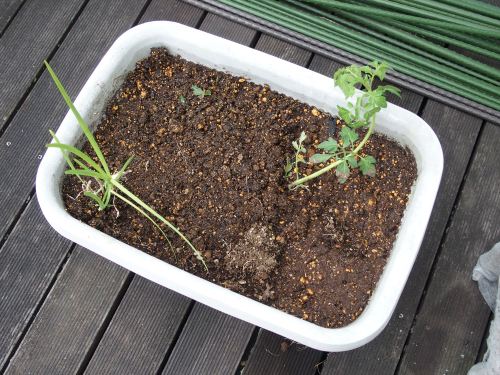 このご時世、少しは不要不急の買い物を減らすためにミニトマトの苗を買ってきました。^^苗を斜めに植えたところ、2,3時間で茎が起き上がってきました。元気に育ちそうで一安心です。^^ちなみに左下のはニラです。一緒に植えるとミニトマトの病気を防いでくれるんだそうです。ミニトマトの苗を買うついでにお花も買ってきました。^^