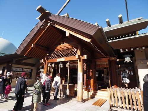 今日は奥さんと待乳山聖天様へ初詣に行きました。お神楽もありました。(ただし写真は休憩中)さらにこの上に本堂があります。今日は着いた時間が良かったのか、ほとんど行列はありませんでした。本堂の脇から撮ったスカイツリー。