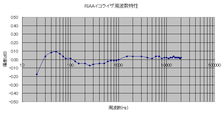 トータルゲインは1KHzで46.8dBで、RIAA偏差はおおむね±0.1dB程度でした。