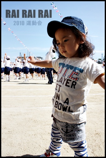 ライ 2歳6ヶ月 延期になった町民運動会、1週間後に晴れて無事開催されました~。ライも保育所で参加してきました(^-^")/小学生のお兄ちゃんお姉ちゃんのマネをして体操をしています♪ ライが参加したのは【プログラム7番 かけっこ】【プログラム9番 121のきょうだい勢ぞろい~はるがきたよ、おきなさーい~】でした(ノ´▽`)ノ ♪ かけっこは「よーい、どん!」のスタートを無視wwwみんなが半分くらい走ってから、ようやくスタート。(なんとも、マイペースな奴であります) ビリから2番目でした~( ´艸`) そして、もうひとつのダンスですが・・・・。始める前から、号泣。(入場門前での様子)長時間の炎天下で、疲れてオネムのご様子。 どんな言葉をかけても、「イヤダ」の一点張り。(´Д`|||) ドヨーン これは無理かなぁ・・・。 そして、いざダンス。ダメでした~。終了 チーン先生方、いっぱい練習してくれたのに申し訳ない。まったく踊りませんでしたw でも、なんだかんだで楽しい思い出になったかなぁ。 参加賞のお絵かき画用紙をもらって帰りました。 そしたら、いっぺんにご機嫌に。。。 ヾ(--;)ぉぃぉぃ