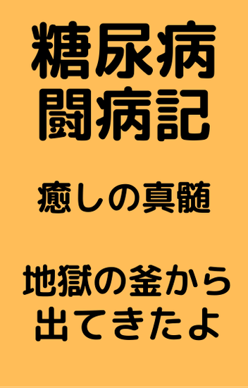 地獄の釜から出てきたよ。糖尿病 闘病記が出版されました。闘病記の最高傑作と自負しております。病気の方はもちろん、健康な方もぜひお読みください。健康の真髄。癒しの真髄を公開しております。リンク 地獄の釜から出てきたよ 闘病記