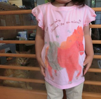 リボンとチュチュ(?)でオシャレした馬の回りにはチョウチョが飛んでおり、