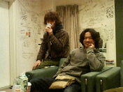 写真は、ライウ゛でいつもPA(音響、でいいんだよね?)をやってもらっている、頼もしい兄貴!岩堀さんと安藤さんです(^^)