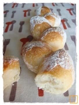 これもパン・オ・レと同じく お友達のKOママさんに戴いたレシピを参考に焼いてみたよ これもヘタクソだけど おいしかったよ 相方が夕食後に2個食べてたよ byうに丼