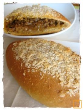 揚げようか焼こうか悩んだ結果 焼きカレーパンにしたよ パン粉を乗せすぎたけどカリッとしておいし~よ 生地もカレー味にしたよ 中はひき肉と玉ネギたっぷり~ピーマンちょっぴり~で作ったよ 美味しくて2個食べたら胸焼けして気持ち悪い 初めてのカレーパンにしては上出来 byうに丼