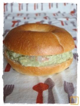 2種類のベーグル焼いたよ ☆プレーン(アボカド&エビ) かじると反対側からアボカドこぼれて食べにくいよ ☆チョコココナッツ 冷蔵庫に板チョコのかけらが4コ残ってたから 生地にいれてみたけど…ん?って感じだよ だからチョコクリームをつけて食べたよ どちらもそれなりにおいしけど アゴが疲れるね~ byうに丼