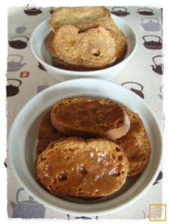 失敗バゲットでラスクを焼いてみたよ グラニュー糖味とキャラメル味にしてみたよ なかなか美味しくできたよ 今度はバゲットの失敗もコワくな~い ラスクにすればいいんだも~ん byうに丼