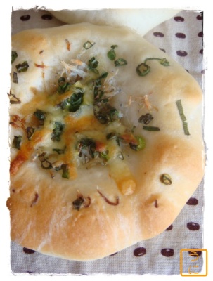 お家にあるもの乗っけて焼いてみたよ しらす・ねぎ・チーズ 焼きたてだよ くっついちゃったよ byうに丼