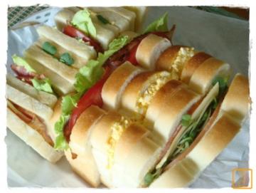 相方の今日の夜勤弁当 自由が丘WINGさんの「ミニだけどロング缶」で焼いた小さな小さな角食パンと お菓子の空き缶で焼いた山形パン サンドイッチに ☆BLT ☆たまご ☆ハムチーズ byうに丼