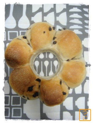 チョコチップのちぎりパン リンゴのちぎりパン 本当はチョコチップをスリムロング型で リンゴをリング型で 焼く予定だったのに・・・ 型に入れてしまってから逆だと気づいたよ お陰でチョコチップのほうは生地が少し足らずに きれいなリングにならなかったよ まぁどっちもおいしかったからいいのだけどね byうに丼