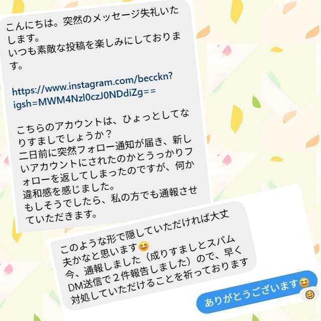 一昨日、直に顔を合わせたことがない方からメッセージが入った。偽アカウントがあるようで、投資話を語っているけど、と最初はこの送信者の真偽について疑問を抱いたが、多分偽ではないと返信をしたら、こと丁寧に、偽アカウントのスクショを添付送信してくれて、注意した方が良いとのアドバイスをいただいた。そんな成りすましがいたことに初めて気づいて、注意喚起のインスタを流した。翌日にも、別の方から怪しいアカウントがあるとの連絡を受けた。なのでFBにも偽アカウントとの違いを分かりやすく示して注意のメッセージを流した。考えてみれば、この成りすましというのは簡単にできる。写真と名前を盗用して、あとは似たようなアカウント名で登録すれば良い。この偽アカウントと本物の見た目の違いは、 1.投資話などを持ちかけること 2.フォロー、フォロワー数が少ないこと 3.アカウント名が紛らわしいほど微妙に違う などではないかな。これは乗っ取りとは違って専門性も不要だ。運営者には偽アカウントや乗っ取りについて、再発防止策とわかりやすい注意喚起の徹底をまずはお願いをする。 生き方ランキング(現在1位) クリック↓でいろいろな写真が見られます 日々の出来事ランキング暮らしを楽しむ Facebook Twitter instagram youtube --------------------------------------------------------------------習志野の風景 写真集--------------------------------------------------------------------ワンストップ習志野--------------------------------------------------------------------習志野ぶらり--------------------------------------------------------------------習志野ぶっくさろん--------------------------------------------------------------------習志野わくわくMAP--------------------------------------------------------------------「習志野防災かるた」が完成--------------------------------------------------------------------わくわく習志野(ツイッター)--------------------------------------------------------------------足で拾ったビジュアル習志野情報--------------------------------------------------------------------習志野の民話が形(本)になりました--------------------------------------------------------------------アクティブシニアネットワーク・習志野--------------------------------------------------------------------アクティブシニア市民講座(習志野)--------------------------------------------------------------------和太鼓 そでっ鼓連--------------------------------------------------------------------夢こむさ習志野--------------------------------------------------------------------