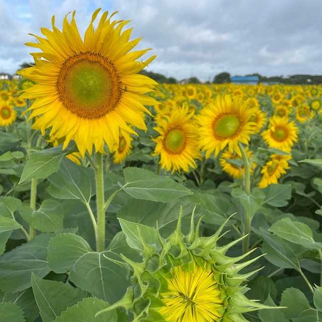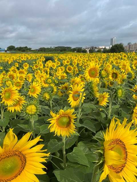 今朝は、一年ぶりに鷺沼ひまわり回廊のひまわりと再会