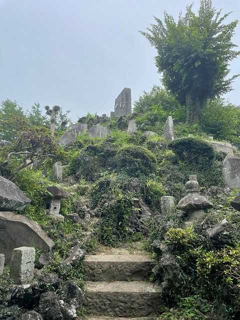 まずは浅間神社。お参りして裏にある富士塚に登頂、わけない山道だけど、コロナ禍での運動不足を感じたひと時。山頂からの風景を一枚。