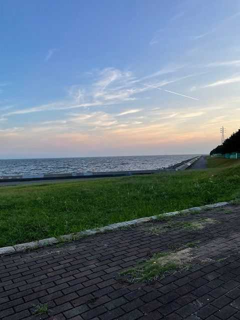 心身を整えるために茜浜に、海風が最高に気持ちいい。しばらくはベンチに転がって青空を眺めながら新鮮な空気をたくさん吸った。