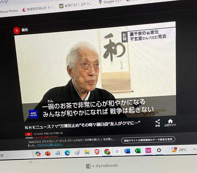 2ヶ月半前にあんなにパワフルな講演をされた千玄室氏が亡くなったと、、とてもあの日の姿からは信じられない!