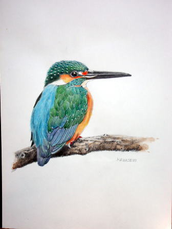 あんまりカワイイので、描かせてもらいました。ナント!キンチャン・ママキンチャンの為に趣味で始めたセーラー・カラー&リードなどが、評判になってもうていつの間にか、仕事になってもうたんやて!センス抜群!見てビックリしたヮ、ほんま!http://ringking.web.fc2.com/ ケント紙(A5)+色鉛筆
