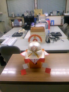 今日で本年の業務は終了。そうは言っても、一人は現場から解放してもらえず、なかなか帰って来なかったが、残された者で朝から大掃除。今日も寒い日となりましたが、立場上「寒い、冷たい」などと開けっ放しの状態での掃除でも口に出来ず(笑)。合間には、請求書を作りながらでしたが、何とか終了。そして、いつもなら今からとなる年賀状も24日に全て投函しましたので、かなり気分が楽ですね。昨年は、29日の夜中までプリンターが動いていましたから・・・。鏡餅もスタンバイOK!.今は便利な物がありますね。夕方、社員と年越し蕎麦を食べに行って、本年の業務も無事終了しました。今年は、我が社にとって厳しい年ではありました。我が不徳で一人の社員は辞めましたが、これには今までにない勉強をさせてもらいました。失うものはあっても、それ以上に得られたものが大きかったと思いますね。来年も厳しさには変わりはないかもしれませんが、今年の経験で一皮剥けた私でありますので、難無く乗り越えて行くことでありましょう!。自分で言うなっ・・・と言われるかもしれないが、自分で鼓舞して言わないと誰が言う(笑)。ところで、掃除中に休憩室の窓際に置いてある『招き猫』が元気に「おいで、おいで」と手を上げ下げしていました。(光を感知すると手が上げ下げするオモチャ)頂いたものですが、派手な色なので休憩室に置いて楽しむのが丁度良いかと(笑)。それも、いつも窓の外を向いて「おいで、おいで」。社員が、「仕事おいで、福おいで」と言いながら外を向けていました(笑)。しかし、見ようによっては「おいで、おいで」ではなく「あっち行け、出て行け」に見えるような(笑)。どんなものでも、見方によって、考え方によって、如何様にも見えるということを、オモチャの『招き猫』が教えてくれている気がしますね。況して、人であれば尚更のこと。見方によって、考え方によって、欠点が長所に見え、長所が欠点になる。視線は遠くに、心を開いて、素直な気持ちで、何事も何者も見たいものですね。招き猫、あっち行け猫?、あなたはどっちに見えますか?。それではまた。招き猫、あっち行け猫?。今日夢に出てくるかもしれませんぞ。夢の中の猫は、「おいで、おいで」と言っているか、「あっち行け、出て行け」と言っているか。これで、あなたの深層心理が占える?・・・なんて言っても、ただのお遊び。人間の心理なんて、それこそ猫の目のように変わる???。御後が宜しいようで!。クリックしていただけると励みになります!!!オガチは、落ちても落ちても飛ぶのを諦めない鳥!夢を諦めるのは早すぎるぜ!『オガチの会』無意味に熱いバカ男バカ親父+違いが分かる粋な女たちの会! 『敗者復活戦』の物語を初めから読みたい方は⇒こちらへジャ~ンプ! 会社のサイトです。こんな仕事をやっています。
