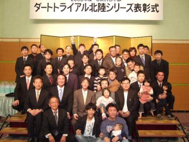 「いつまでセグウェイ乗ってるんだよ!」とストーリアN村氏よりお叱りのお言葉をいただきまして(笑)2ヶ月ぶりの更新!!>かまたさん西フェスおつかれさまでした!なぜかいつもになく噛むことはありませんでした(笑)全日本ではカ~ミカミカミでしたからねえ。さあなぜでしょう?えーとまずは近況から・・・30日のダートラ西フェスの悪天候で風邪をひき(弱っ)さらにその朝携帯を枕にしたおかげで液晶がダウン。水、木と西フェスの余韻に浸ることなく急に決まった東京、横浜出張。ベイブリッジ下の大黒埠頭でひと仕事(なんだかアブねー雰囲気だった)金は保育園の「表現会」の場所取りのため、早朝より順番待ち(1番ゲット!)土は雪でタイヤ交換2台分・・・の後、もうすぐ1歳の長女が車内で嘔吐し、雪が降る中べっとりと汚れたチャイルドシートを洗浄&ファブリーズ。というフツーの一週間でした(笑)そして今日はダートラ北陸シリーズのシリーズ表彰式!今回はいつもの金沢国際ホテルから場所を変えてJR松任駅近くのグランドホテル松任です。いつもダラほど(金沢弁です)飲まされて帰るんだから交通の便が良いほうが助かる人も多いのでは?と思いこの場所を選びました。特に県外組は今回JR利用が多かったのかな??私はいつものごとく暗黙の了解で司会ですが、終わってから家族サービスがあるため残念ながら禁酒マークです。まずはご挨拶。中部部会長、JMRC副運営委員長より。乾杯はMRTのO弥氏です。しばらく歓談の後表彰へ。とりあえず全員にマイクまわしてみました。N0はチャンピオンY井選手が控えめにチャンピオンカップで祝杯。将来が楽しみな一人です。ちなみに表彰式の後○○行ったの?N2はイジラレ役の2位M谷内選手が「今年は不完全燃焼でした!」と来年への闘志を燃やすと共に、1月に能登島で行われる「ダートラキャンプ」(ただの泊まりの宴会だが)の告知をしていました。参加者募集中です。N3はチャンプM原選手が最終戦でのバトル(口撃)を激白。3位T中選手はノミの心臓で既に有名ですが、2位K田選手も口撃に弱いという非常にアナ思いな情報をいただきました。来年はK田選手にもスピーカーからプレッシャーをかけるようにしよう(笑)SD2では復活後チャンプ獲得のセリカS々木選手が「F谷さんの全日本の走りを見て僕も門前を・・・」だな~んて、もしウソでも言ってくれるだけでうれしいですね!ホントだったら来年他の選手にプレッシャーかけまくってあげるよー(笑)SD4は実っちゃん大好きK坂選手が「チャンピン取ったどー!」と北京金メダルの元柔道選手ばりの第一声。写真でもそうですが、終始満足げでしたね!実ちゃんのブログには書き込みしたのかな?その後T越オヤジのトークショー、恒例の諭吉飛び交う抽選会もあり無事終了しました。会場以外で会える唯一の機会だと思うので、また来年も開催できるといいですね!~番外編~富山のK田選手がついに○○宣言ともとれる発言!!表彰式には皆勤賞の彼女さんとついに!?いつも彼の走りを見つめる彼女さんの姿はしっかりアナブースから見えてますからね~。一部始終はひそかに写真&ムービーで撮っちゃいました(笑)欲しかったらあげるよー。
