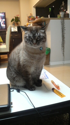 ねぇ、ねぇ、起きて... このテーブルを覚えているみたい。 単身赴任先で使っていたコタツテーブル。 mukuの中では、コタツはあがるものだと思っているようです。 (なぜか?は、またそのうちに) 2度目..カメラを向けたら『ニラミ』 撮るなあ.... 熱が上がったり下がったり... 背中が痛くて寝ていられず、mukuとソファーで座ったり横になったりしていたら 起きて!とテーブルに乗って訴えはじめました。 一時的にテーブルを出してきました。 ソファー前は、出来る限りテーブルを置かないようにしているのは mukuがのんびりするところ、寝転がって遊ぶ場所にしたいからです。 まだ熱はありますが、食欲旺盛でね(=;ェ;=) そっちも困っています。 熱出して太る人っていないよねσ(∧_∧;) たぶん体重増えているはず。おなかが張っています。