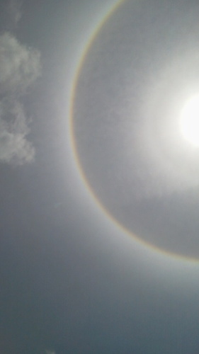 田舎の友人から送ってきた写メ。今日の沖縄は「ハロ現象」が見れたそうです♪友人曰く「ハッピ~リング」だそうです♪Happyになれましたρ(^O^)/~♪ララ~