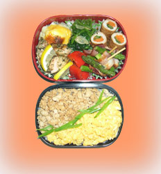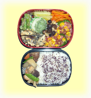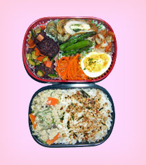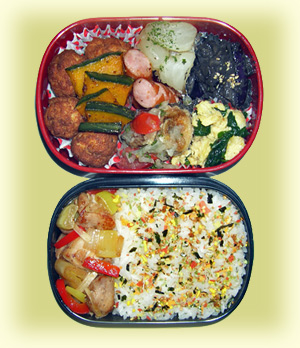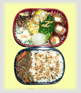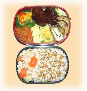 またまた一週間の始まりですね!そろそろ年末ということもあり、何となく気持ちもせわしくなってきました。年賀状のデザインもまだ考えてないしなァ。困った困った。(^^; 月曜日のお弁当はいつも手抜きちゃん♪ 冷凍モノ大活躍です。しかも解凍すればすぐお弁当箱に詰められる…てのが理想ですね。(笑)いまどきの冷凍食品というのは結構優秀。お野菜類も冷凍食品のほうがむしろ栄養価が高かったりして。山芋のすりおろしなんて、自分でやると手が痒くなっちゃうし手間もかかるし…でも冷凍だったら手軽に利用できますよね。もちろん自分ですりおろした山芋も冷凍保存できますよ。うちはお弁当素材のために冷凍庫はいつもギューギュー詰めです。小分けした袋がいっぱいで、大好きなアイスクリームの入る余地がないくらいなの。(TT) あ、でも昨日買ってしまいました、ハーゲンダッツの季節限定「黒ゴマ」!ハーゲンダッツファンでゴマフリークのSaLaDとしましては、絶好のかぶりつき商品です。10月から出てたんですね。昨日店頭で初めて見つけて買いました。おいしそうっす…。黒ゴマにはセサミンとビタミンEがたっぷりで、老化予防に最適ですよね。なるべくこまめに摂取したいものです。さて今日のお弁当です。~今日のお弁当メニュー~ ・ひじきの煮物 ・豆腐バーグ しめじのあんかけ ・サバの竜田揚げ ・にんじんとツナの中華和え ・ブロッコリーのゴマダレおかかまぶし ・薄焼き卵のほうれん草巻き ・揚げナスの中華風~ちょこっとレシピ~にんじんとツナの中華和えにんじん小1/2本は4cm長さの千切りにしてさっと茹でるかレンジで加熱。シャキシャキ感が残る程度で。しょうゆ大1と1/2、酒・砂糖・ごま油各小さじ1、ツナ大1、ショウガの千切り少々を混ぜ、にんじんを和える。ブロッコリーのゴマダレおかかまぶし塩茹でしたブロッコリーに市販のゴマダレをかけ、鰹節をふりかけて和える。ブロッコリーはお湯で茹でずにレンジでチンしています。そのほうが栄養成分が残りやすいし、光熱費の節約にもなります。ブロッコリーをよく水洗いしてお皿に広げ、塩をふってふわりとラップをし、レンジの「野菜の下ごしらえ」に設定。もちろん「下ごしらえ」という機能がないレンジでもできます。「下ごしらえ」機能がついていてもレンジによって熱の伝わり方が違うため、最初は様子を見ながら加熱時間を調整してみてください。ブロッコリーは加熱しすぎるとグチャグチャになってしまいますから、私も毎回レンジの前で様子を伺ってます。うちのレンジではだいたい2~3分位ですので、それを憶えておけばレンジを見つめる時間は30秒程度です。^^ 加熱しおわったら余熱で火が通らないように、すぐにザルにとって冷ましてくださいね。チョット待って、それでおしまい?冷凍モノは?実はメインの手作り豆腐バーグでした!豆腐って普通は冷凍不可ですが、ハンバーグにして火を通しておけば冷凍しても解凍後はふっくら柔らかです。夕食に豆腐ハンバーグを作ったときに、小さなハンバーグも一緒に焼いて冷凍しちゃうんです。で、夏は凍ったままお弁当にそのまま入れちゃう!真冬の時期は前の晩に冷凍庫から冷蔵庫へ。豆腐バーグの作り方は別の機会でご紹介しますね。※ページトップにおせち特集を作ってみました。 おせちって考えてみたらお弁当の集大成みたいなものですよね。 私もいつか自分で作れたらいいな~と思っていますが、まだ未熟者。 今年も年末実家に帰り、母の作るおせちを手伝いながら ワザを盗んできたいと思います。^^ 「今年は頑張って自分でおせちを作りたい!」という方はこちらを ご参考にどうぞ♪