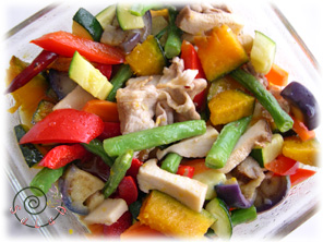 ~今日のお弁当メニュー~ ・タケノコ鶏そぼろ ・茹で豚と夏野菜の揚げ浸し (豚シャブシャブ肉・にんじん・いんげん ・赤パプリカ・ナス・カボチャ ・ズッキーニ・エリンギ入り) ・ヤングコーンとコーンと ジャガイモのマヨサラダ ・キャベツの炒り卵 ・鶏レバーの串刺し (シイタケ・ネギ・ピーマン) ・ほうれん草としめじの バター醤油ソテー ・ブリの梅風味ソテー ・アスパラベーコン ~ちょビッとレシピ~ 茹で豚と夏野菜の揚げ浸し野菜は上記にこだわらずお好きなもので。^m^* 今回の漬け汁は濃いめのだし汁、醤油、みりん、酢が3:1:1;1ぐらいの割合で唐辛子1本を加えた和風味。一旦煮立てて冷ましておく。野菜を適当な大きさに切って素揚げし、少し油を切って熱いうちに漬け汁に浸す。野菜の揚げ浸しはアレンジ次第で和風にも、中華風にも、洋風にも♪簡単でお野菜いっぱい食べられるのが嬉しいですね。冷蔵庫で冷やして食べると一層おいしい~♪ ←多めに作って晩ご飯で頂きます♪鶏レバーの串刺し鶏レバーは牛乳で臭み抜きしたあと水洗いして、お醤油・生姜・ハチミツで濃いめの味に煮る。冷めたら好みの野菜と炒め、野菜には塩・コショウとレバーの煮汁を少々かけて、少し冷めてから串刺しにする。一見、串焼きのようですがそれぞれを炒めてから串に刺してあります。そのほうが火の通りが確実なので。エッ、わざわざ串刺ししなくてもいいじゃないかって?ははっ。^m^* レバーはなるべく新鮮なものを購入し、約一日牛乳に漬けると殆ど臭みが気になりません。前夜に煮て、朝、他の野菜と一緒に炒めてから串に。レバーは炒めると破裂しやすいので時間と火加減、気をつけて。d(・・〃) ブリの梅風味ソテーブリ1切れは3等分ぐらいに切ってきれいに洗い、水気を拭いてフライパンで両面ソテー。焼けてから少量の酒・みりん・醤油・梅肉で味付け、煮絡める。(3:3:1:1)調味料はごく少量です。(酒小さじ1ぐらい)たまにはサッパリ味のブリも♪野菜の揚げ浸しに入っているパプリカ、自家製が混ざって~す♪^m^*売られているパプリカよりも濃い~赤なのですよ。^^; 怖いぐらい赤い…昨夜のご飯は豚の冷シャブだったのですが、余った豚肉も一緒に入れちゃいました♪今日は野菜たっぷり、多品目弁当で~す!何品入っているのかはわかりませんけど。(´m`)たぶん20はクリア?週末だからって、やけっぱちに入れたわけじゃございませんよ?さてさて、今週は今日で最後です。先週は我が家も夏休みだったのですが、夏の一日はやたら長くて(と言いつつ常に時間には追われていますが)夏休みなんて遥か遠い過去のことのような気がします。「やっと?」という気もしなくもないのですが、そろそろ8月も終わりです。最近は朝晩がちょっとだけ涼しく感じるようになり、夜、静寂の中に虫の音が細く響くようになりました。(*゜‐゜)ええなぁ..この分だとあっという間に…(食欲の!!)秋ですね。^m^*ムフ♪子供さんが夏休みのご家庭も追い込みですね!宿題がんばれ!(笑)では皆さん、どうぞ楽しい週末を~♪^^