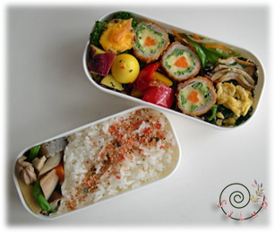 串焼き…だったんですけど、今日はべんと箱のスペースの関係上、串を抜いて半分に切って入れました。^m^