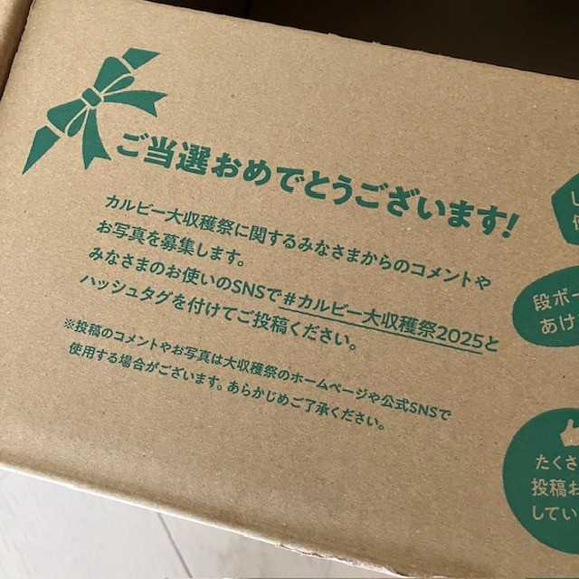 去年当選を逃し、悔し涙を流したカルビーの大収穫祭ですが今年は見事当選!!昨年は息子たちの就職・巣立ちによりカルビー消費量が激減!!その結果応募券があまり貯まらず、撃沈。今年は集めていた応募券で、第1回目の締切に間に合うよう早々に応募。(第1回目の締切に応募すれば、応募者数が少ないため当たりやすい、と言われてます)その甲斐あって、じゃがいもをたくさんいただきました~~。今夜はジャーマンポテトにします!!カルビーさんの大収穫祭は、じゃがいもの他にグッズがついてくるのですが過去記事はこちら ⇒ 大収穫祭2020 紙製のランチバッグ ⇒ 大収穫祭2021 エコバッグ ⇒ 大収穫祭2023 プレート今年はお菓子BOXでした。で、このBOX、私勘違いしておりまして……お菓子の詰め合わせBOXだと思い込んでいたのですが、お菓子を保存しておくためのBOXでした。カルビーカラーが目立ちます(笑)どこに使うか、ちょっと迷いますが…… 保存食をいれておくのにちょうどよさそう。カルビーさん、ありがとうございます!!