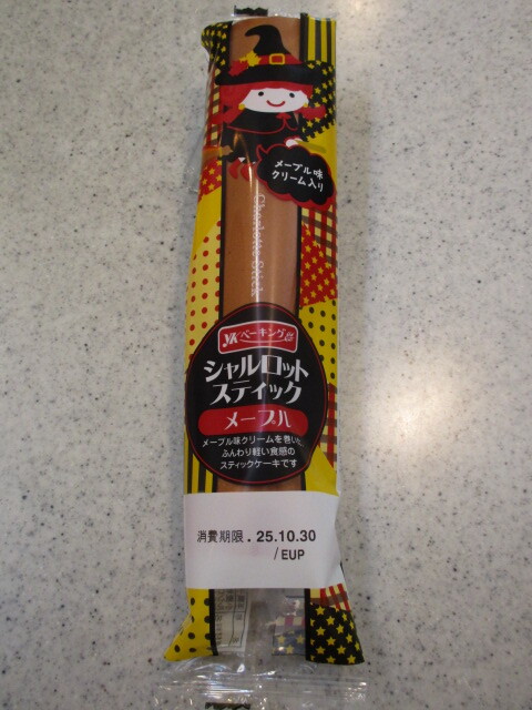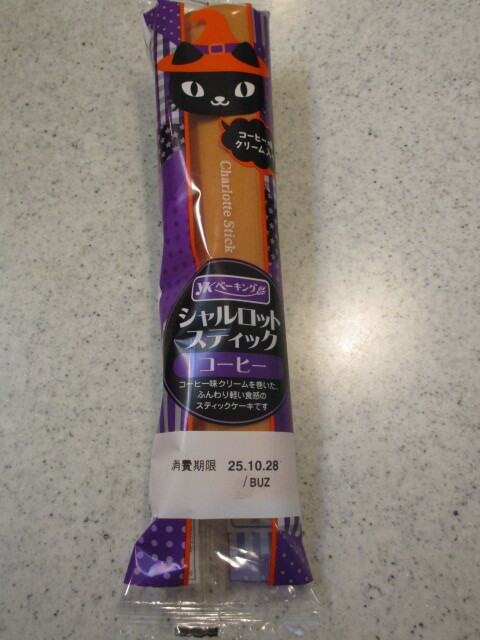 マックスバリュさまで買いました。土曜日のマックスバリュ様は、ハロウィン商品がたんまりと並んでました。4種類ほどの味が並んでいたので大好きなコーヒーを選択です。 YKベーキング シャルロットスティック コーヒー コーヒー味クリームを巻いた、ふんわり軽い食感のスティックケーキです。期間限定!ハロウィンパッケージ。いつものように中身Checkは、画像を Click! でございますわ(^^♪台所常温保存で食べました。節分になると恵方巻きになるんだろうなぁ…と思いながら一口大に切ったものをパクパク食べてました。うんま~~~です。今日は、火曜日なので買い出しの日です。いつもは、午前中に行くのですが出かけようと思ったら土砂降りになってしまい…いいや、午後からにしちゃお。昼食後に出かけました。特売の卵は、残っていたので確保出来て良かった。みんな雨で出足が遅い?この間、全部引っ剥がしてキレイにした道路をまた、掘り起こしておりました。そこには、何があるの?この間 やれば良かったのにどうして一度で終わらせないの?これって無駄な工事のやり方じゃないの?今日、イオン様のオーナーズカードが届きました。もうちょい早ければ良かったのに…元々イオンモールの株を持っていたのですがイオンの株と一緒になった(?)これでお買い物をする時に出せば お買い上げ金額によってキャッシュバックがあるそうです。映画も1000円で観ることが出来る。シニア料金が1100が1200円に値上がりしたのでちょうど良かったです。