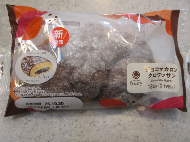 ファミマさまにタバコを買いに行ってついでに買ってきました。新発売シールの【ファミマがチョコだらけ!】に目が釘付けです。去年も食べたなぁ…まずは、食べたことのないモノにしよう!です。 ファミマルBakery チョコマカロンクロワッサンチョコクリームとチョコダイスを巻き込んだクロワッサンに、チョコマカロン生地を絞って焼き上げました。サクッとした食感とチョコの味わいが楽しめるスイーツパンです。いつものように中身Checkは、画像を Click! でございますわ(^^♪常温保存をそのまま食べました。チョコクリームの中にチョコダイス。歯ごたえがあって面白く美味しかったです。今日は、木曜日なのでゴミ捨てさえすれば何をしても良い日です。にゃんこの顔がみられるかなぁ~と思ったら暖房中のようで窓が開いてなかった…あ~ゴミ捨ての楽しみがなくなったな。元同僚からランチの待ち合わせ時間と場所のお知らせがあった。予約時間の10分前集合って早くね?5分前でいいじゃん…福井在住、富山在住、金沢在住の3人でランチかと思ったら現職1名も参加です。あら、10月にランチするんじゃなかったの?なんか10月をやめて土曜日じゃないとヤダと言った私に合わせてくれたようです。でもなぁ、現職参加は、聞いてなかったよ…。聞きたいこともあるから いいんだけどね。4年ぶりのおばちゃん女子会は、どんな話題になるのかしら?