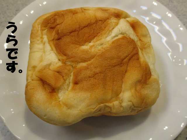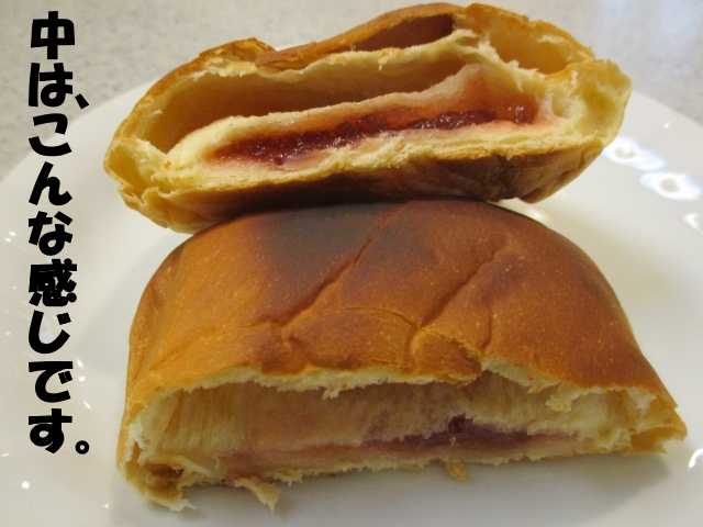 パンが丸くない、良くあるジャムパンの形でもない、裏を返すと包んだっぽい見た目。