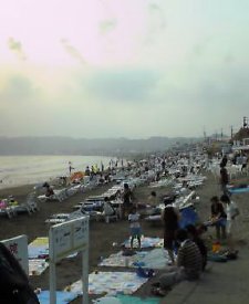 由比ヶ浜のビーチ・バー。暦の上ではもう秋だけどまだまだ夏を楽しんでいます。今日も夕方からトコトコ犬と海へ。海水浴やマリンスポーツを楽しんだ人たちが帰り支度しています。まだ仲間と浜辺で遊ぶ人、これからサーフボードを持って海に入ろうとしている人、犬と、子供と、恋人とそれぞれ散歩をしてる人、みんなみんな楽しそう。今この瞬間の夏を満喫している感じです。今日は海辺がなんだかとても気持ち良かったので材木座の端から由比ヶ浜まで歩きました。時々砂浜に座ってひとりといっぴき、ぼんやり海を眺める。東の空には白い月。おうちへ帰ろう。浜を折り返し元来た道を引き返す。今日はたくさん歩いたね。2005-08-18