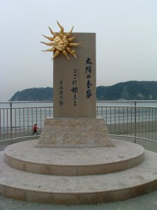 夫、休日になり近所をドライブ。お昼を食べた後曇り空の逗子海岸へ。「太陽の季節」記念碑。いつも犬と散歩する材木座海岸よりうんときれいな逗子海岸の浜辺でした。2005-12-02