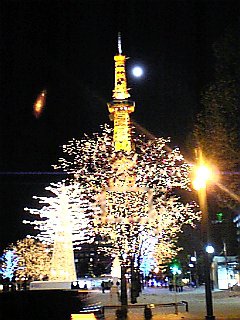 札幌に越した友達から昨日写メールが届きました。あまりにもきれいだったのでお願いしてPCの方にも送ってもらいました。大通公園のイルミネーション。奥のタワーは札幌テレビ塔。昨日はサザンが札幌ドームに来ていたそうです。飛行機でならすぐだけど北海道は遠いなぁ。今日もまたどこでもドアがほしいと夢を描くのでありました。2005-12-19