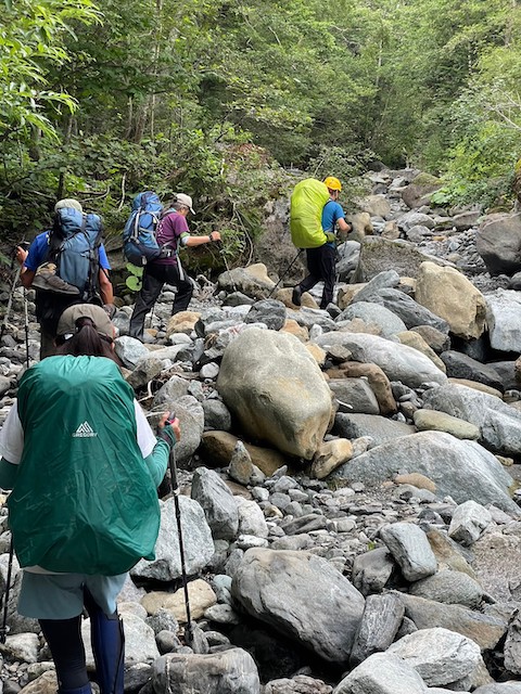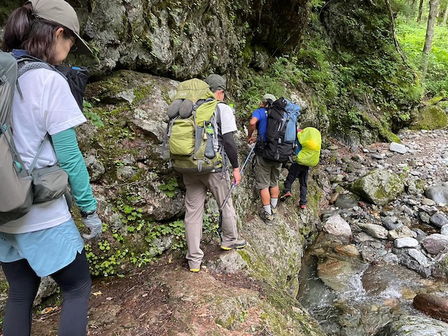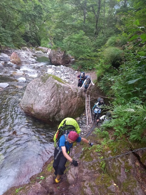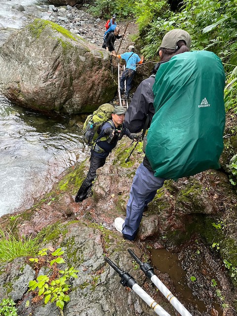 【平取町山岳会の方々と合流】 【山岳会、幌尻山荘の方のフォローで下山開始】