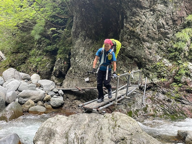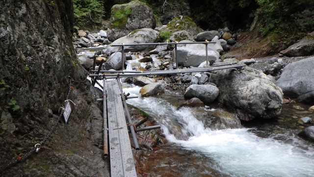 【渡渉に唯一かかる橋】 【滑って転落しないように渡る】