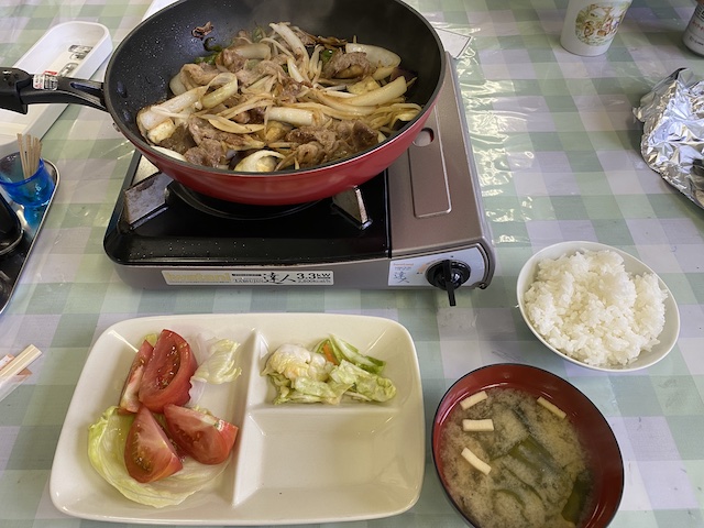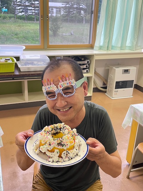 夕刻は、明日からの幌尻岳登頂成功を願いビールで乾杯。夕食は、山荘名物ジンギスカンで舌鼓。デザートは、私の8月誕生日サパライズで、仲間がケーキを用意してくれた。午後9時、明日、天気が好転してくれる事を信じて消灯。