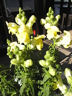 土曜日に成ちゃんがりえちゃんのおばあちゃんの家の近くでお祭りがあって、出かけて行きました。お祭りでもらってきた花がキンギョソウという花とか・・・黄色くてかわいい花です。