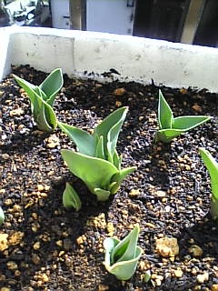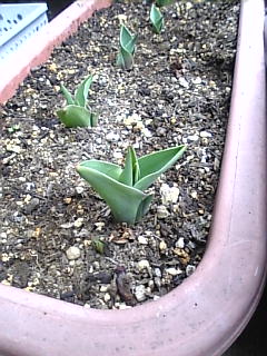 チューリップの葉がだいぶ大きくなってきました。ここ数日暖かい日が続いたので、一気に大きくなったような気が・・・