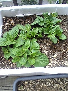 だいぶジャガイモの葉が大きくなって、わさわさとしてきました。そろそろ、芽かきをしないとダメかな?チューリップは少し伸びては、いるけれどまだまだ蕾がありません。